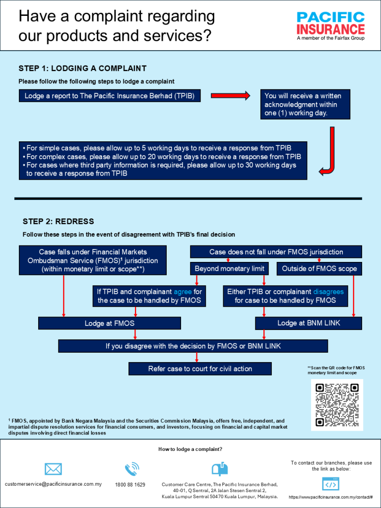 - BNM Laman Informasi Nasihat dan Khidmat (BNMLINK) where the complaint does not fall within FMOS’ jurisdiction or the complainant disagrees to be referred to FMOS.